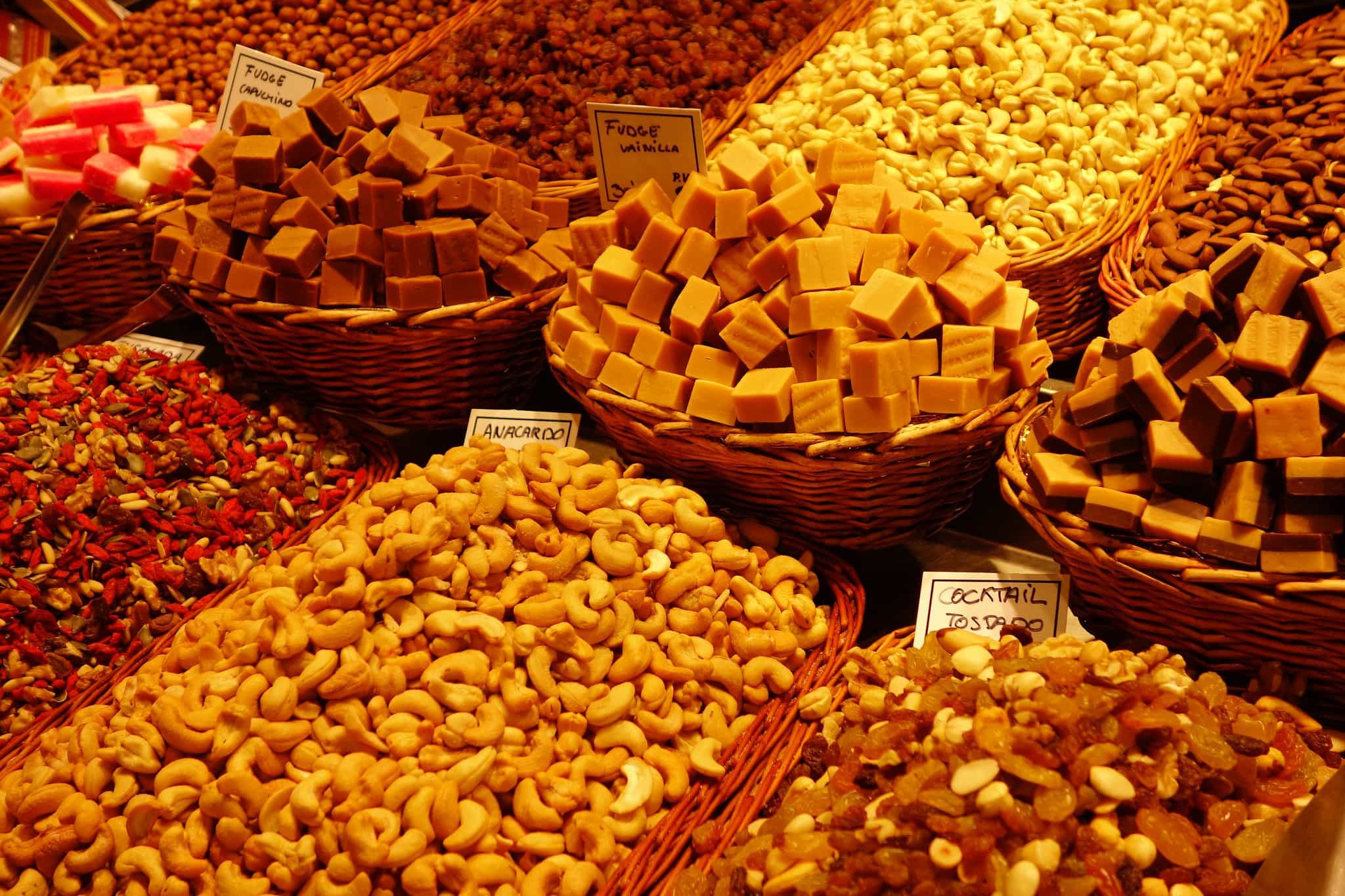 The famous Boqueria can indeed be packed with people (including lots of tourists) but it’s definitely worth a visit. It’s situated right on Las Ramblas (most popular street in Barcelona) and you will find candy, fruit, vegetables, meat, fish and many more beautifully displayed food. Here people eat, shop and gossip. There is some really great food to get here and do visit the official website where you can even find a plan of all the market stalls. Or you can visit the market like we did: just enter and experience this paradise for the senses…