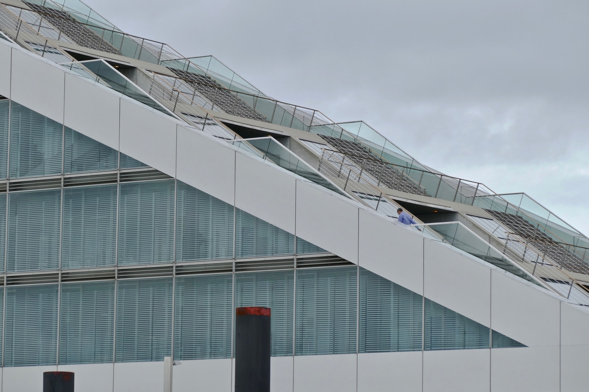 Another ship-like building (this time more futuristic) is Dockland. Designed by Hamburg based architects Bothe, Richter and Teherani, this building has an observation deck on the roof that can be reached via a public outdoor staircase!